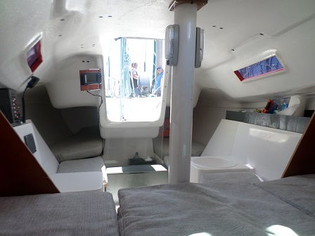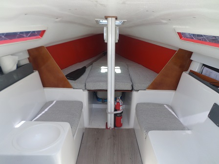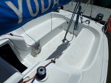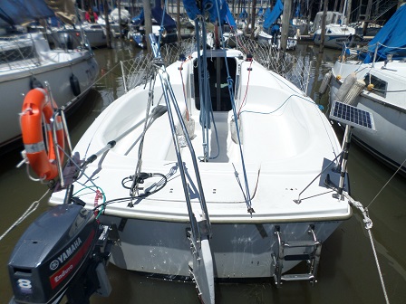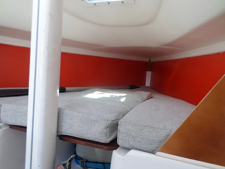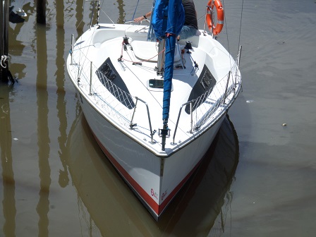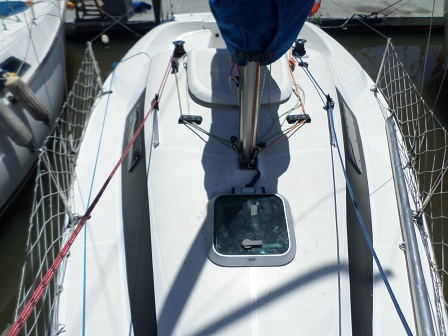 Arboladura y cubierta: APAREJO SLOOP AL TOPE, 2 MOLINETES, ENROLLADOR, VANG RÍGIDO, MANIOBRA DE SPY, FONDEO, CARPA, CUBRE MAYOR, ESCALERA EN POPA