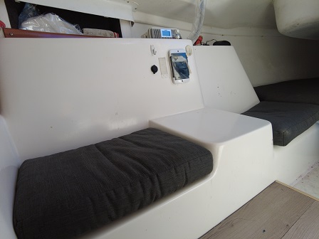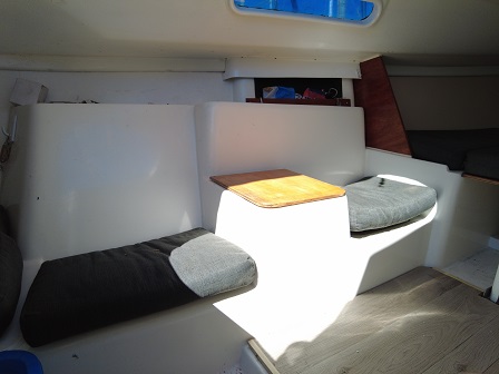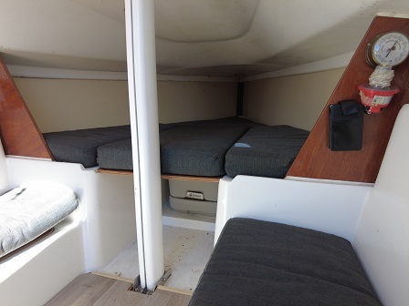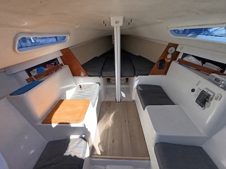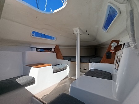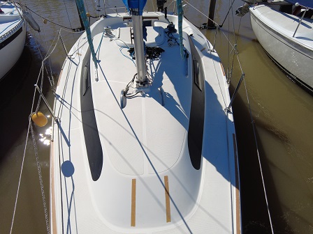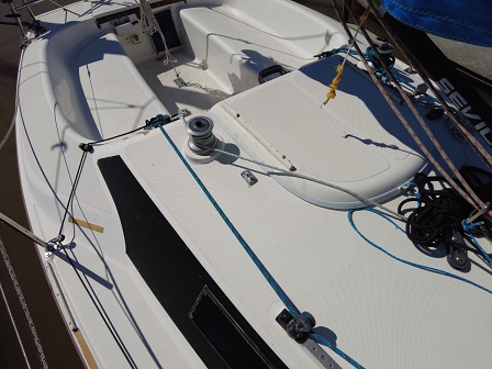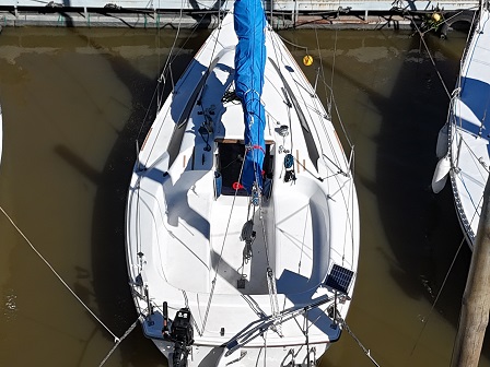 Arboladura y cubierta: APAREJO SLOOP AL TOPE, 2 MOLINETES, ENROLLADOR, VANG RÍGIDO, 2 FONDEOS, 2 BOMBAS DE ACHIQUE , CARPA, CUBRE MAYOR, ESCALERA EN POPA