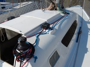 Arboladura y Cubierta: APAREJO SLOOP 7/8 DOBLE CRUCETAS RETRASADAS, 4 MOLINETES CON SELF, ENROLLADOR HARKEN, VANG RIGIDO, MANIOBRA SPI, FODEO DE 15 KG, 5 BOMBAS DE ACHIQUE, ABERTURAS LEWMAR, CARPA, MALACATE PARA INSTALAR CON CATALINA