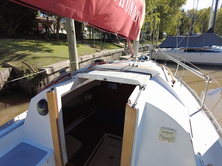 Arboladura y cubierta: APAREJO SLOOP AL TOPE, TRES MOLINETES, FONDEO, CARPA, CUBRE MAYOR, ESCALERA EN POPA